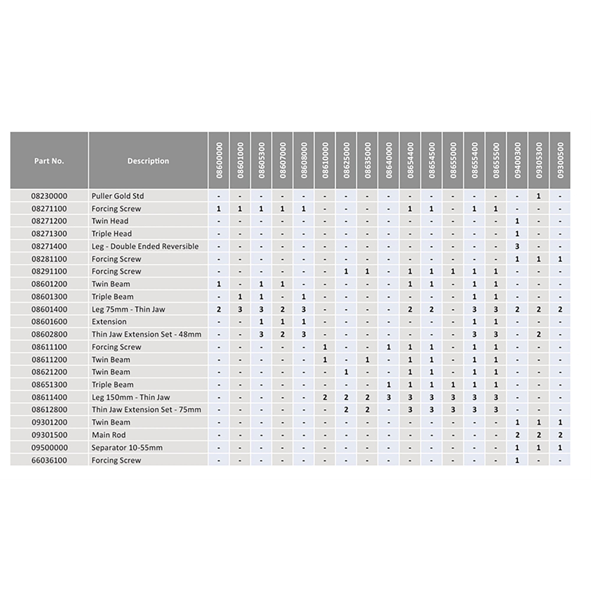 08607000 - Mechanical Thin Jaw 2 Leg Puller 0-75mm